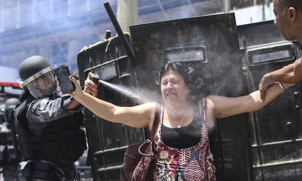 The impeachment of Rousseff is a coup d'etat: BRAZIL POLICE USE PEPPER SPRAY AT AUSTERITY PROTES...